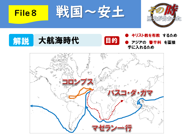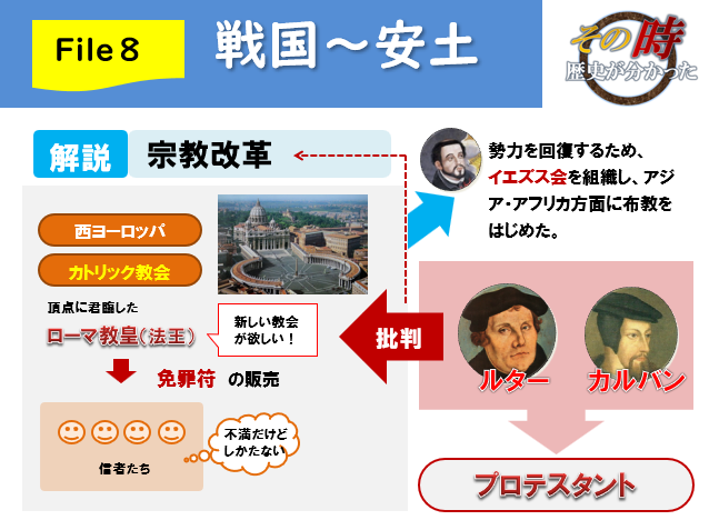 ここでつながるのがザビエル。「カトリックがヨーロッパで勢力を失った分、アジアで新しい信者を増やして逆転してやるぜ!」という作戦で、日本まで布教に来たってわけ。歴史ってつながってるだろ? このつながり、入試的にも重要!