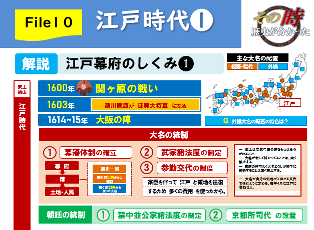 こうして幕府と藩が全国を支配する仕組みを幕藩体制と呼ぶんだよ。さらに3代将軍・徳川家光の時代に、支配はもっと厳しくなります。