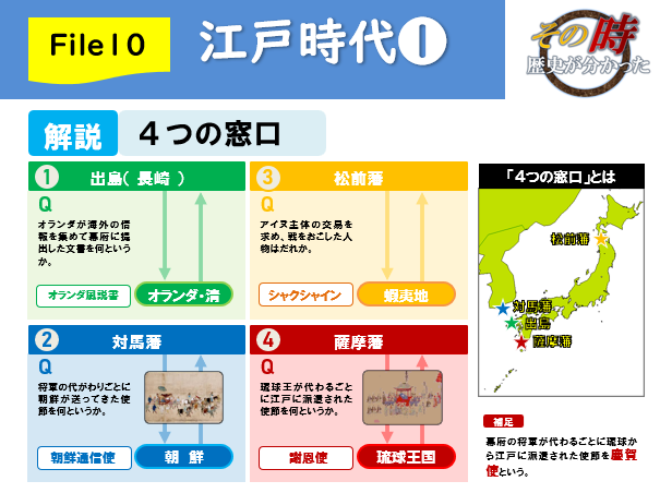 鎖国といっても、外国との関係が完全にゼロになったわけじゃない。周辺地域との関係は最近よく入試に出るぞ!