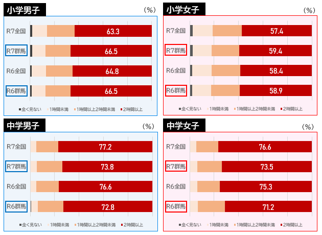 1日2時間以上デジタル機器を使う人は全国でも群馬でも増加しています。