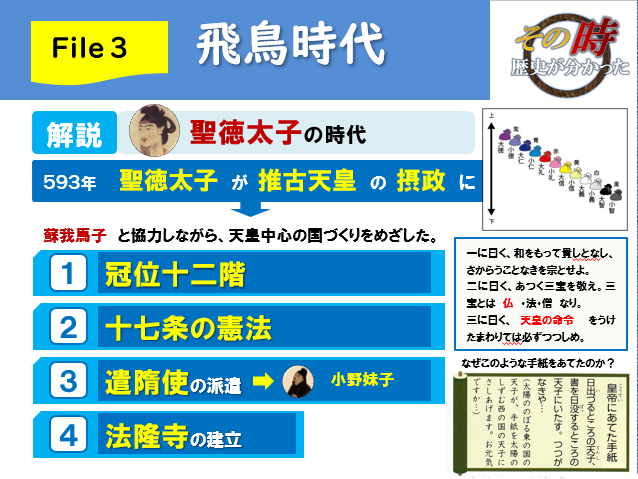 今日は飛鳥時代。『聖徳太子から大宝律令まで』。