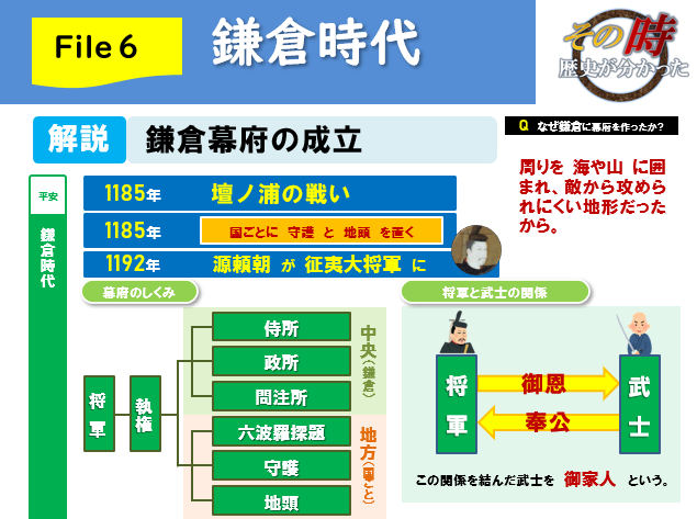 - 御恩: 頼朝が「君の土地を保証するよ!手柄を立てたら新しい土地をあげるよ!」